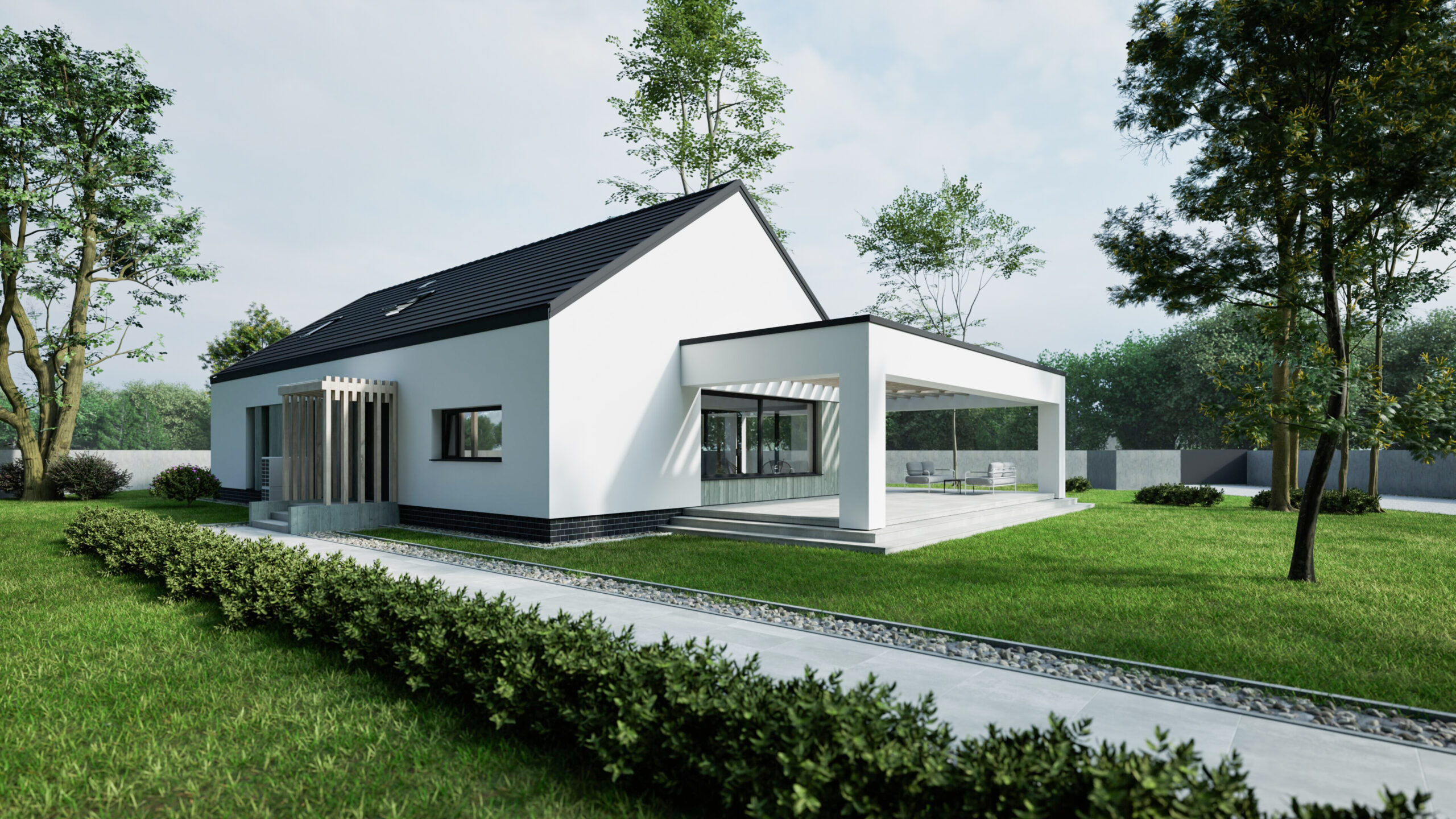 Faza: Projekt budowlany Powierzchnia zabudowy: 272 m² Powierzchnia użytkowa: 371 m²